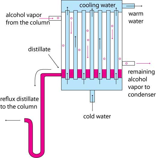 In reflux configuration the reflux condenser regulates the strength of alcohol that is produced.