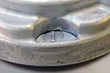 Each size can requires a corresponding size chuck. Use the same instructions for removing the chuck except turn the crank counterclockwise. Place the pin through one of the two holes in the chuck, to keep it from turning, and urge the crank counterclockwise until chuck is loose. Then turn the crank until the "0" is in the window and unscrew the chuck by hand. After unscrewing, hold chuck in hand and strike the threaded end of the chuck screw with the flat side of the hammer. This will pop out the screw out of the chuck.