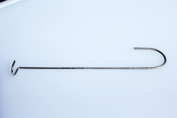 The beheaded or split belly open fish may be hung with a twine loop or by using a specialty hook. Such a hook may be made from stainless steel wire or a wire hanger. This arrangement will prevent fat from dripping down.